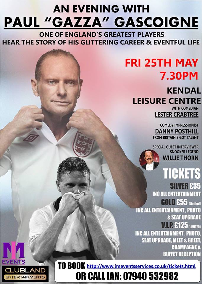 Laughter UK are proud to have secured the services of England Football Legend Paul Gascoigne for this exciting event in Carlisle
